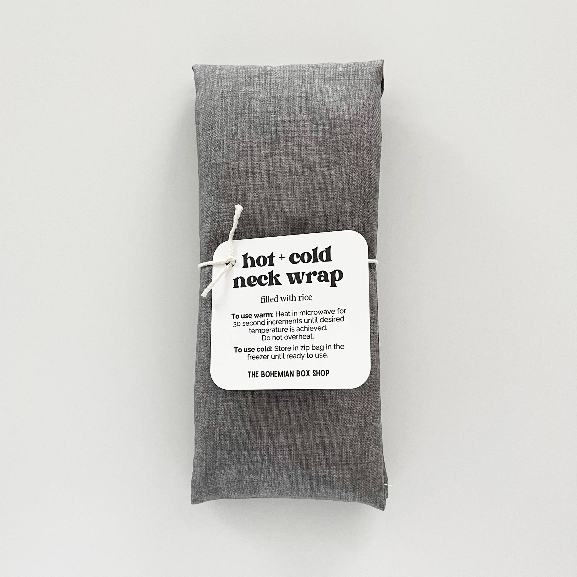 HOT & COLD NECK WRAPS: • Measures approximately 4” x 20” • Weighs approximately 1 lb. 10oz • UNSCENTED - Made with 100% cotton fabric and rice.