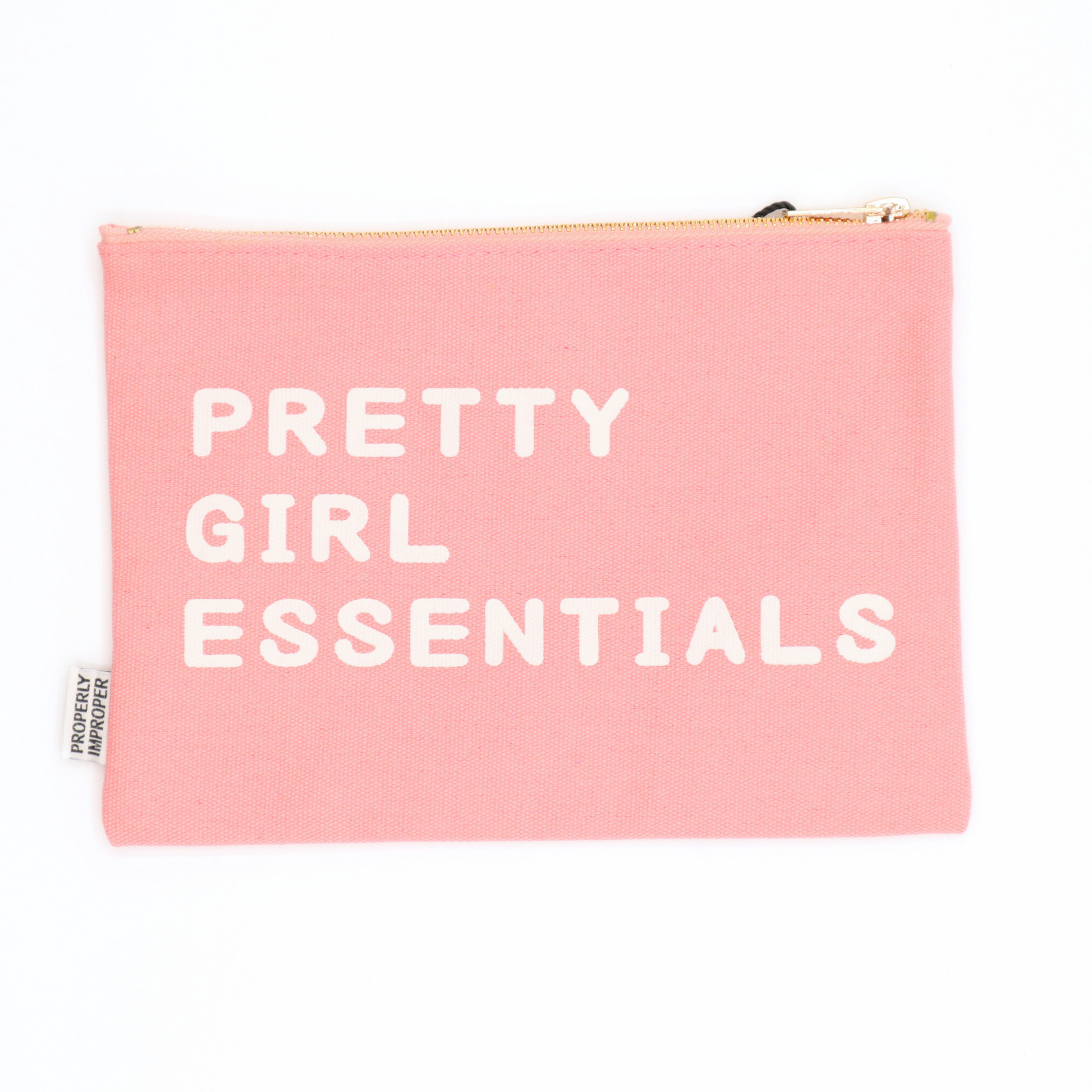 This pouch is perfect to hold lipstick, car keys, a compact mirror - you know, all the pretty girl essentials. Saying is printed on both sides of the pouch. It’s durable with a zip closure. It has a gold lining inside for a pop of color and easy to clean fabric.